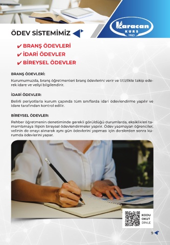 Kurumumuzda, branş öğretmenleri branş ödevlerini verir ve titizlikle takip ede-